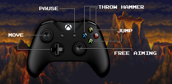 The most part should be very obvious. To aim and throw the hammer, the player has two possibilities. First, he can press and hold the "Throw Hammer" Button. The aiming preview appears on the screen and by pressing left/right on the DPAD or the left analogue stick the player can rotate freely.