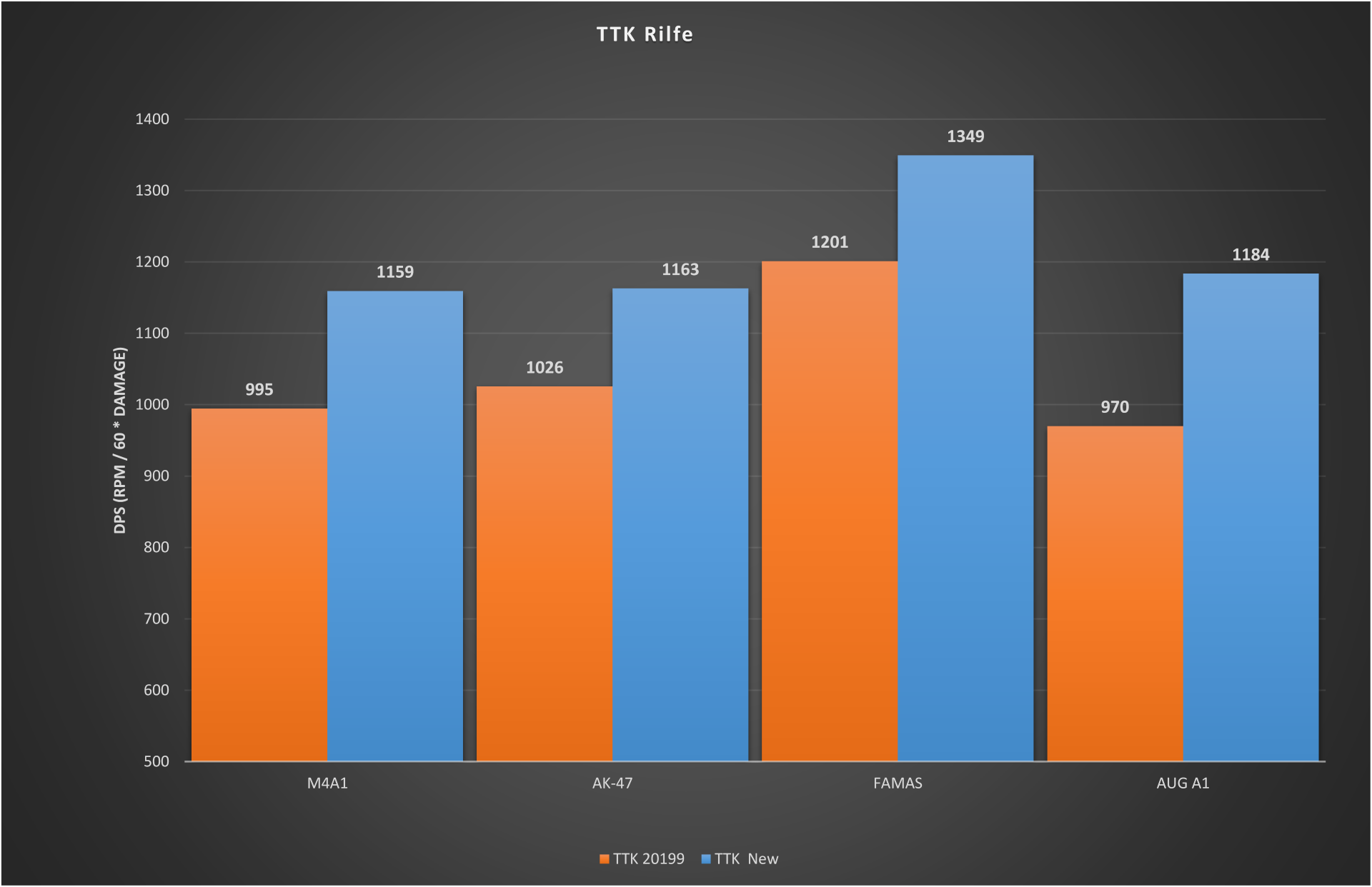 Generally lower TTK for full auto weapons; RPM & basedamage increased (details on the bottom of this article)
