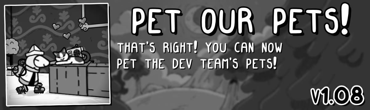 But most importantly... YOU CAN NOW PET ALL OF THE DEV TEAM'S PETS!