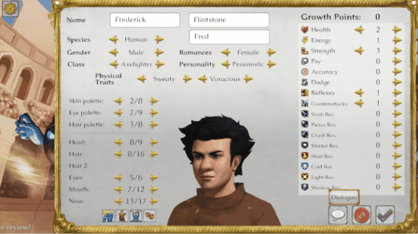there is now a character creator button accessible on the title screen that lets you create and manage custom characters, each with their own name, species, gender, class, portrait, personality, physical traits, romantic preferences, and stat growths!