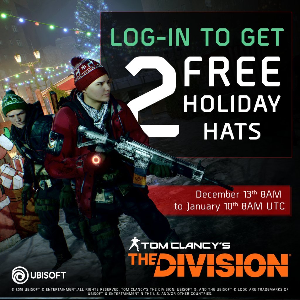 Surprise! 2016's Christmas beanies are returning! Log in to #TheDivision before January 10th to redeem the Noel and Yuletide Holiday Hats!