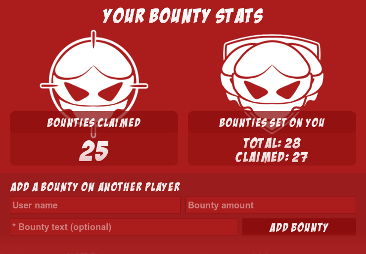 You can now view the list of active bounties, add bounties on your friends and see your global bounty stats!