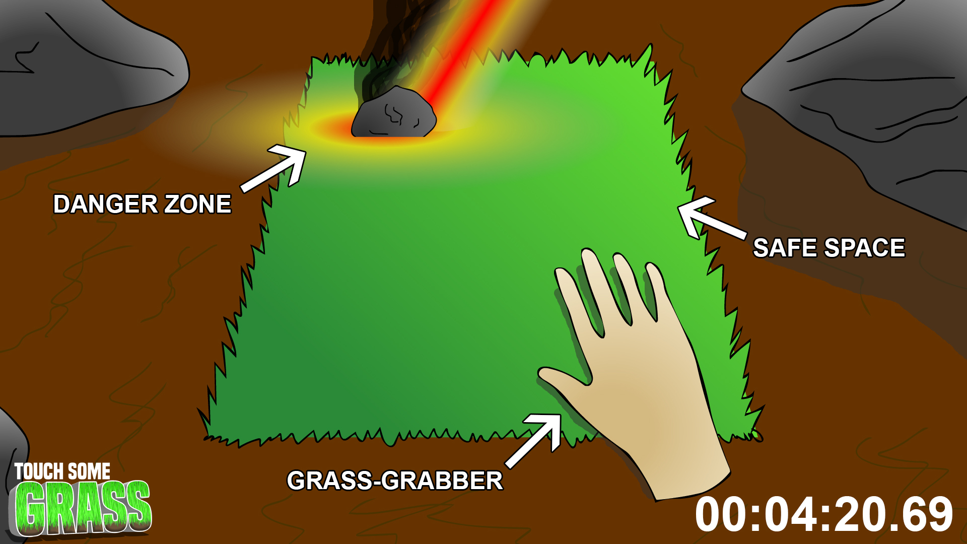 Basically, the new mode will involve asteroids (or something, I don't know) smashing into the grass in random locations. The goal is to keep touching the grass for as long as possible, while avoiding the falling debris. If at any point you stop touching grass, or if an asteroid hits your "grubby little grass-grabber", the round ends, and your score is tallied up.