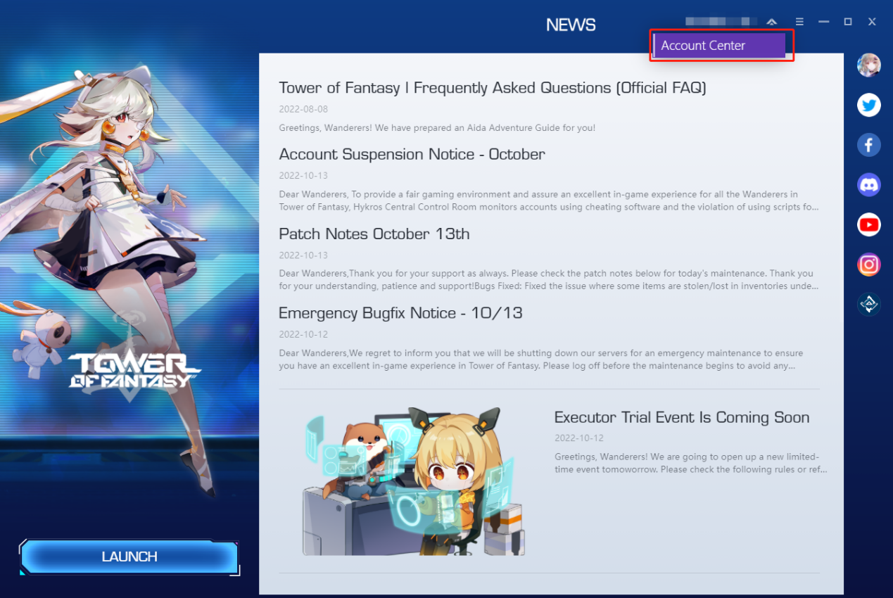 Is there a difference between the launchers of the Steam version and the official version? The launcher is required for account registration, logging in, and launching the client. In addition, you can view the latest news and announcements in the launcher. But unlike the official version, you will be downloading, updating, and repairing Tower of Fantasy via Steam Store.