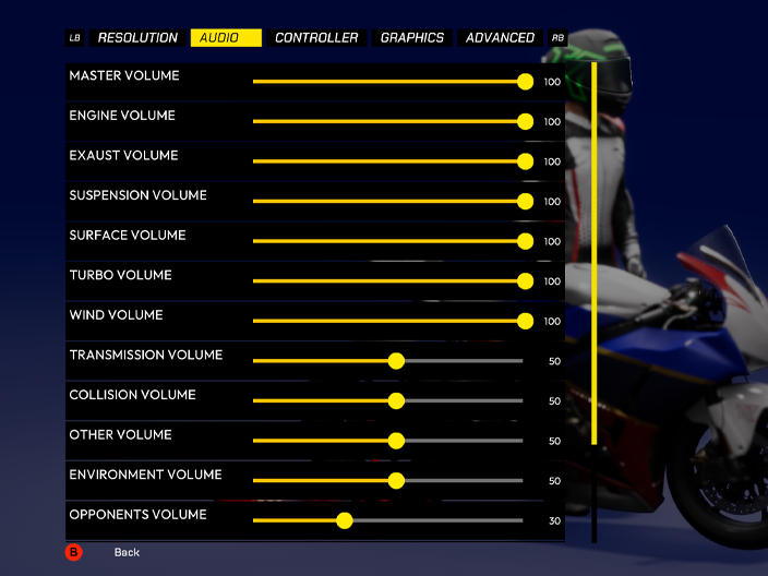 In view of the many requests, we have created a comprehensive menu so that you can adjust every aspect of in-game audio to your liking, and you can also change it from the in-game pause menu. We have also added new sound effects, created new sounds for many bikes, and created reverb and doppler effects for replay!