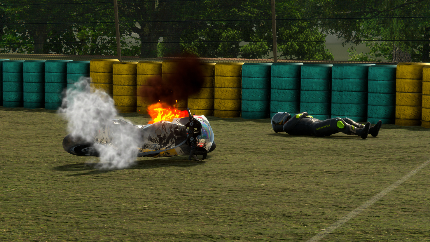 Finally it's time to crash! :) We are happy to introduce the first release of our dynamic damage system! You can damage chassis, fairings and also the engine can generate issues and valvetrain blocking! Pay attention on downshifting during hard braking :P We also added a "special" AI behaviour on ROBO46 avatar (you can try it when ROBO46 AI will pass you during races )