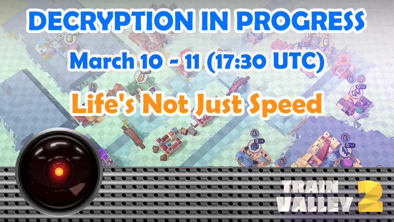 Hello friends! Every Friday 17:30 UTC/GMT we hold a “Let’s play together” competition. During next 24 hours everyone is welcome to try and score the best time in a preselected level - and help our faithful Hal 9000 get a clearer image of the mysterious locomotive we've encountered not long ago. Join our Discord server and keep Discord running while playing — your results will be automatically published in the #lets-play-together channel. You need to get 5 stars to qualify.