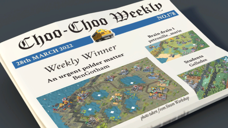 Level of the Month March 2022 edition is here-a tale about designing a track layout to evade numerous obstacles with a 1000 TV2$ demolition job budget in mind, building said tracks unto a city districted around terrain level and industry buildings proximity, amassing funds to construct and later supply the airplane factory crowning a vast supply chain and not wasting a single second of the 10:00 timer.