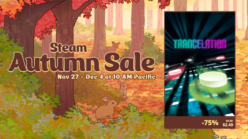 Steam Autumn Sale is here and as usual, all our Steam games are on sale - this time offering all time highs with Trancelation available with 75% off!
