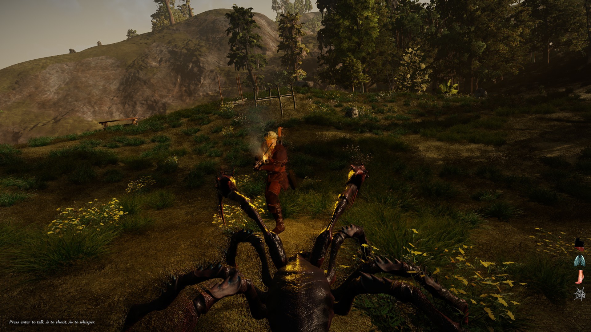 Global Chat and Whispers - There aren’t any global chat channels or private whispers in ToA: Exile. Instead, players are given area-based chat functions to communicate. The default speaking option has a range of about 10 ft, while the /shout (/s) easily doubles that. Using /whisper is best for those standing next to you, but anyone within a few feet will overhear your conversation. While we do understand that friends and cooperative groups will will use VOIP to communicate outside the game, we felt that the feeling of isolation that comes with being alone helped to deepen the player’s immersion.