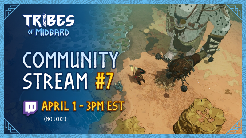 Heads up - we'll be streaming on Twitch and Steam this Friday, April 1st at 3pm EST (no, I'm not kidding) ⚔️ Come join Community Managers Sydnee and Jipay to talk all things Tribes of Midgard, and ask any questions you have about the game.