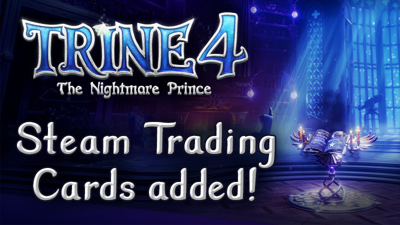 We have added Steam trading cards to the game. Launch the game to get your free card drops and start trading them with your friends. Series includes 10 different cards and they all feature characters from Trine 4: The Nightmare Prince. Remember that you can also visit the trade forum if you want to change cards with other players.