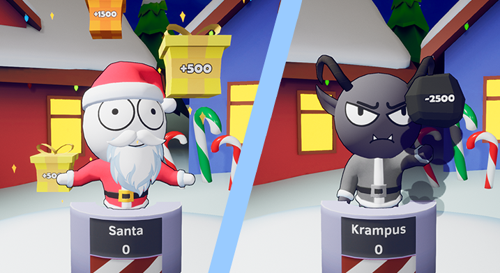 During the event you can take on Santa & Krampus in a boss battle! Fighting for the spotlight, Santa & Krampus swap out between questions and each has a different chance round. Prepare for both presents and coal!