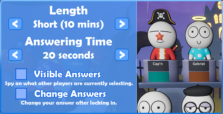 Added text under the 'Visible Answers' and 'Change Answer' options in the lobby to better explain their usage.