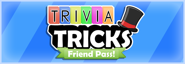 Friend Pass is available now! Know someone who wanted to try Trivia Tricks but didnât own the game? They can follow the link below, download Friend Pass, and join your lobbies just as any other player would!