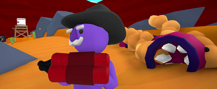 Last Train Outta' Wormtown is a chaotic Sandworm vs. Cowboy showdown, where the man-eating Worm player can only detect human players when they're standing on the ground.