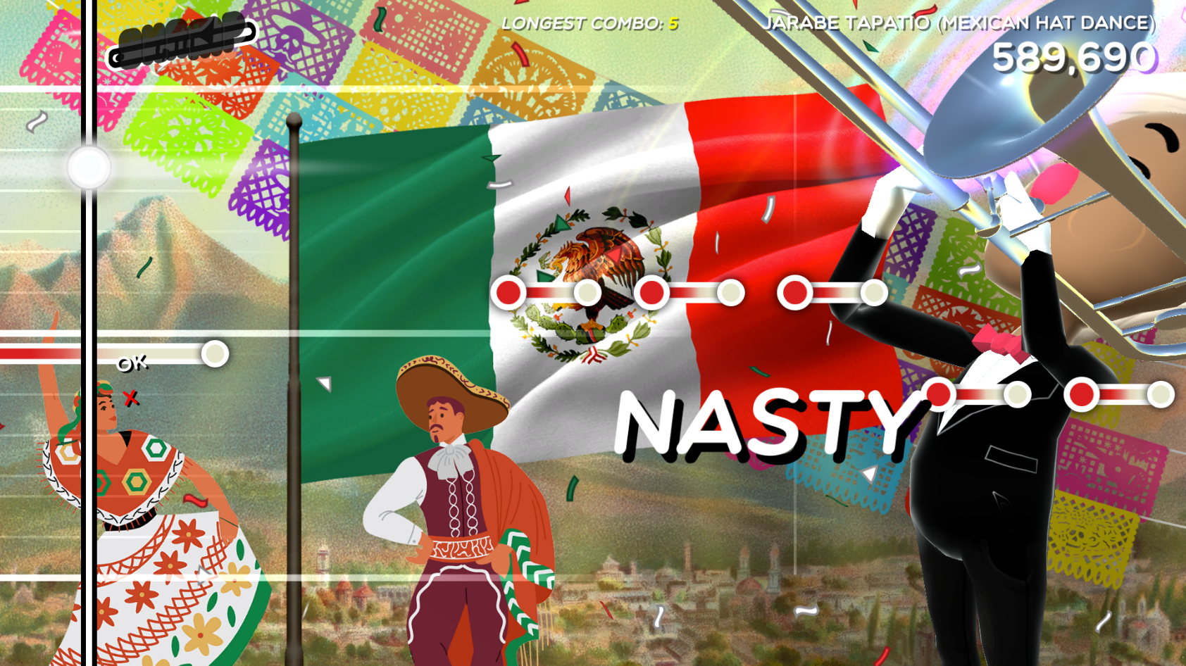 We just pushed an update which brings the game to v1.05! It adjusts a few very tiny things, but mostly adds a new track: "Jarabe Tapatio," known in English as The Mexican Hat Dance!