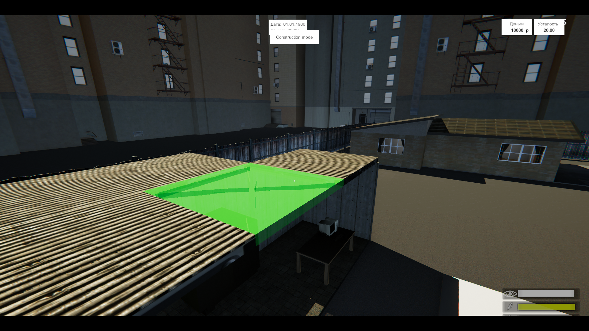 The construction system now looks as follows. In order to build, it is necessary to purchase cement and sand at the factories. Water is used in the refrigerator. Next, you must enable the construction mode by pressing the P key. Next, pressing the right mouse button will bring up the construction menu. At this stage, the constructed buildings are not saved.
