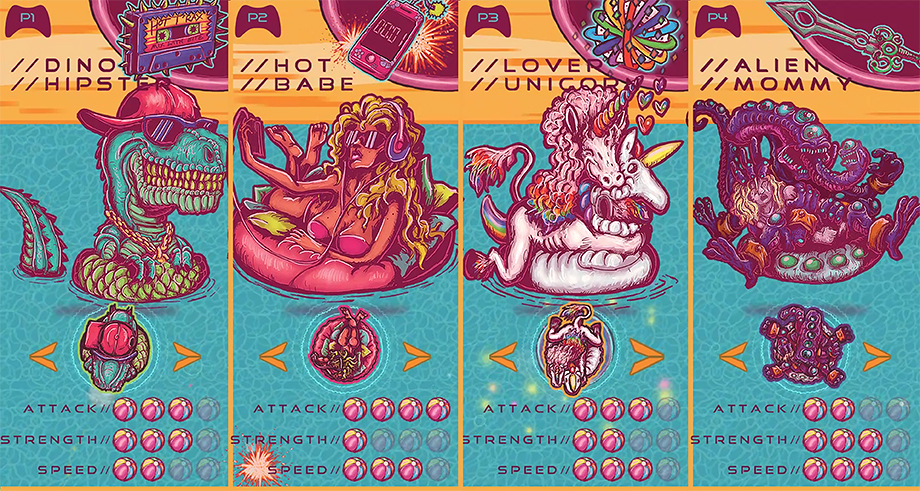 Here are a few of the wild characters from Tubetastic, each with a unique starting weapon and stats. Different tubers are better suited for particular game modes, so figure out who’s the best for your aquatic style! (Be on the lookout for hidden Easter eggs)