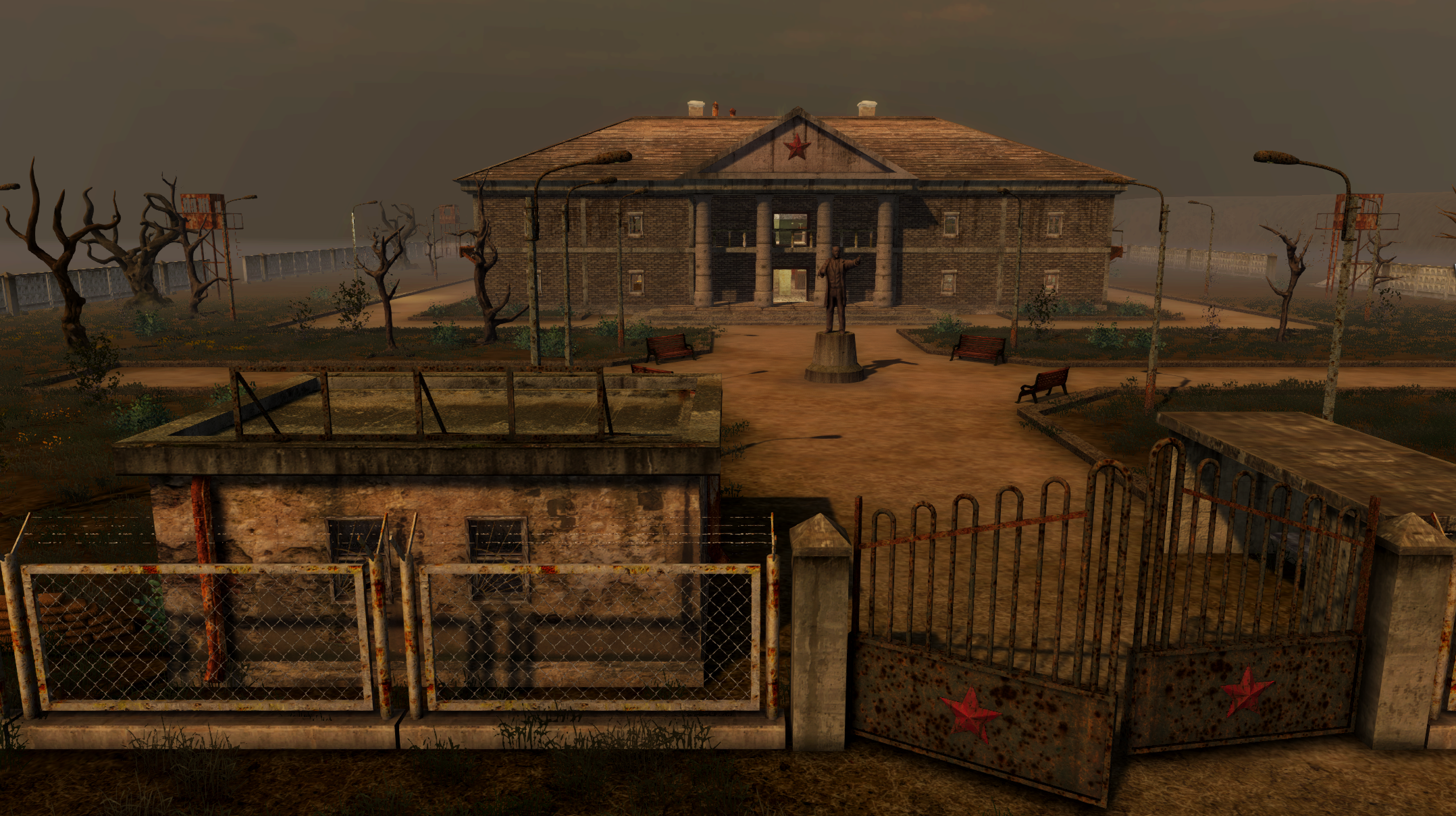 I just wanted to say thank you for all the support and patience! I'm about to take my kids out for trick-or-treating, but I thought I might drop an image of what I'm working on - the mugshot of the Slaughterhouse DLC (actual name TBD) map! It took me more than a month to model the buildings and other objects, and still much more work to fill the scene with plants and other furnishing. But it's coming along nicely :)