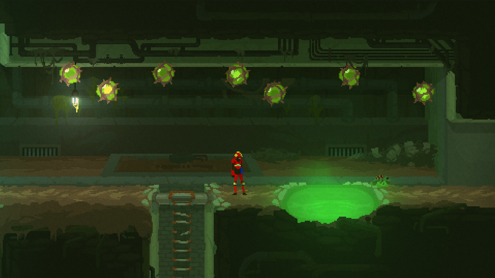 The world of Turbo Kid is vast and diverse. While exploring it, you'll come across a wide array of vistas, from mesmerizing outdoor landscapes to oppressive underground areas.