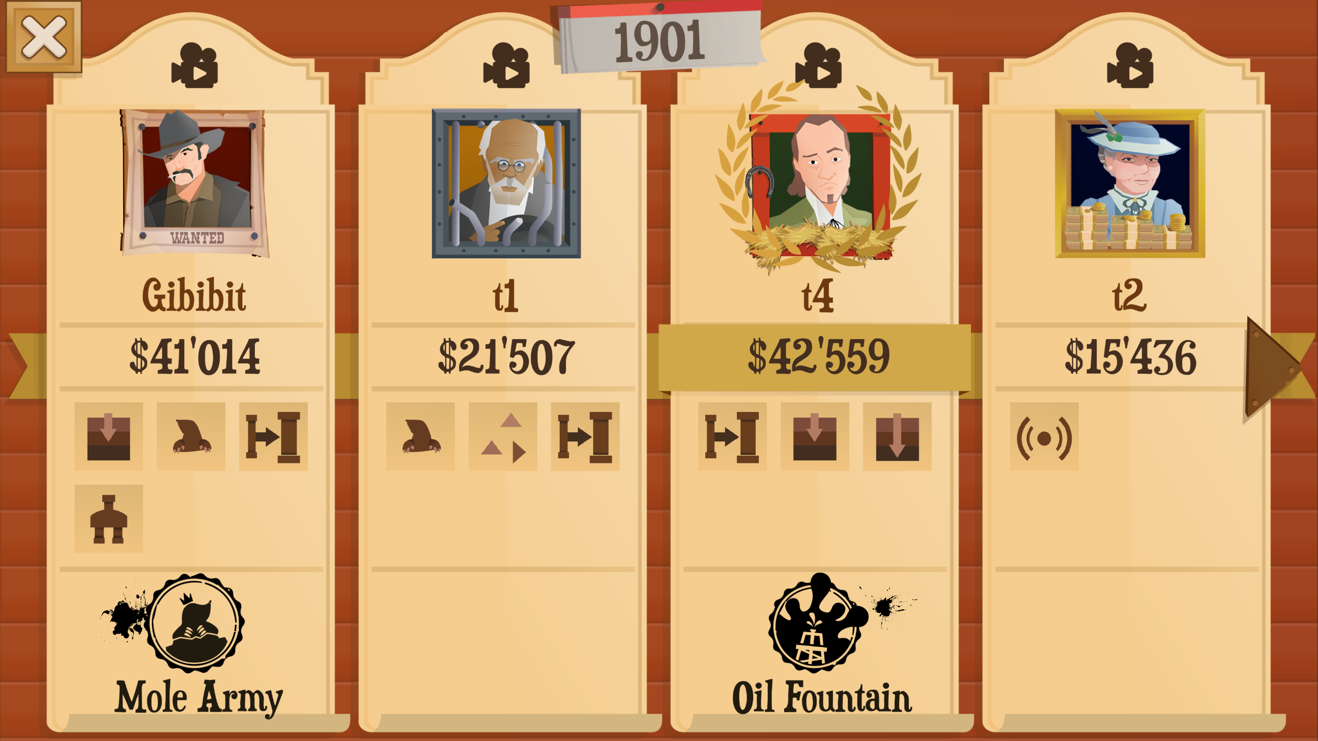 As you can see, in our test match no-one was willing to bid that high for land. But being picky can make a big difference in the amount of oil you get! The potential profit difference between a plot of land with 45,000 or 55,000 barrels of oil is much more than $2,000. So don’t be afraid to follow the inflation when bidding on land. Getting the best plot counts double. More oil for you, less for them. You can have your milkshake, and drink it up too!
