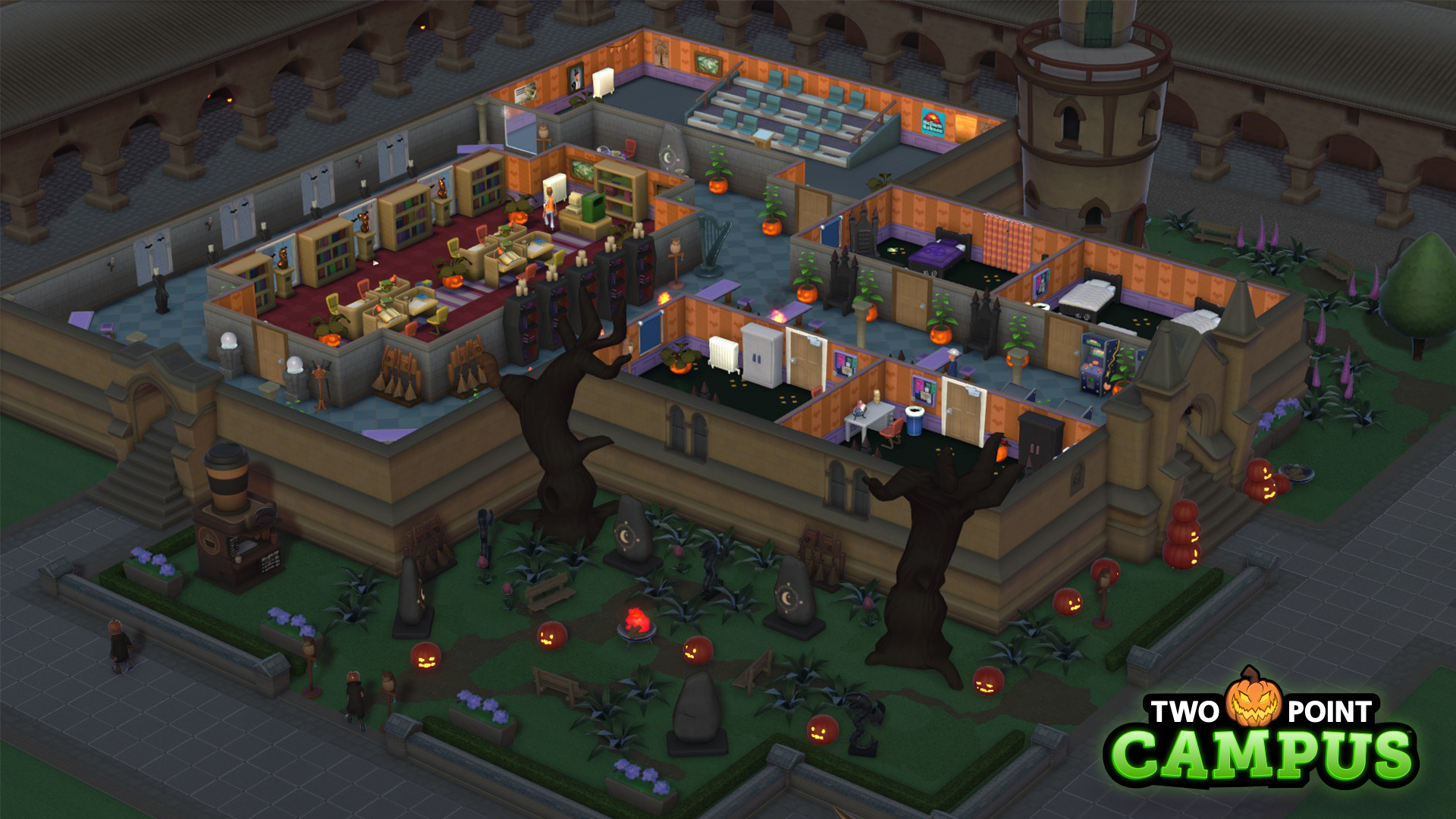 Strange things are afoot in Two Point County... make sure to check under dormitory beds, as students start acting like complete pumpkin heads; because the spooky season is here! Over the next week, you can expect a whole cornucopia of eerie goings-on, whether it's music designed to send a shiver down your spine, or a whole heap of pumpkins, we've got the update for you to really bring a gourd-geous look to your campus!
