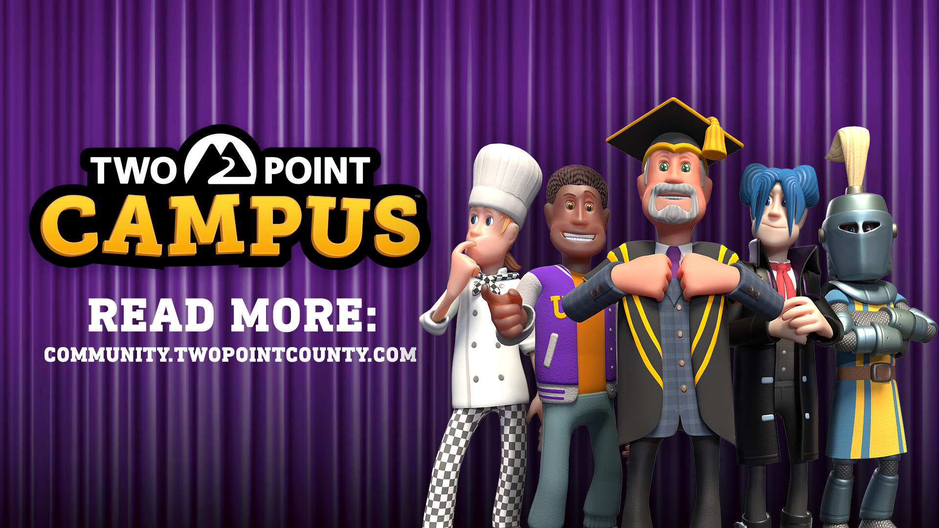 We are SO excited for you to experience Two Point Campus, and we'll be showing off lots more about the game as we get closer to launch. So be sure to follow our social channels, and sign up to the Two Point County forums to stay up to date, meet new friends and chat to us about all things Two Pointy!