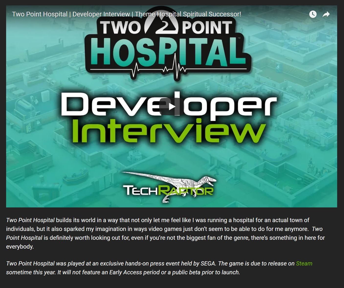 We are positively speeding towards the launch of Two Point Hospital (before you ask, there's still no launch date to announce bar 'Autumn 2018' ;) ) and whilst we still have a few things up our sleeves to share with you, we thought now would be a good time to kick off How We Operate - a blog to help you get to know the team a little better.