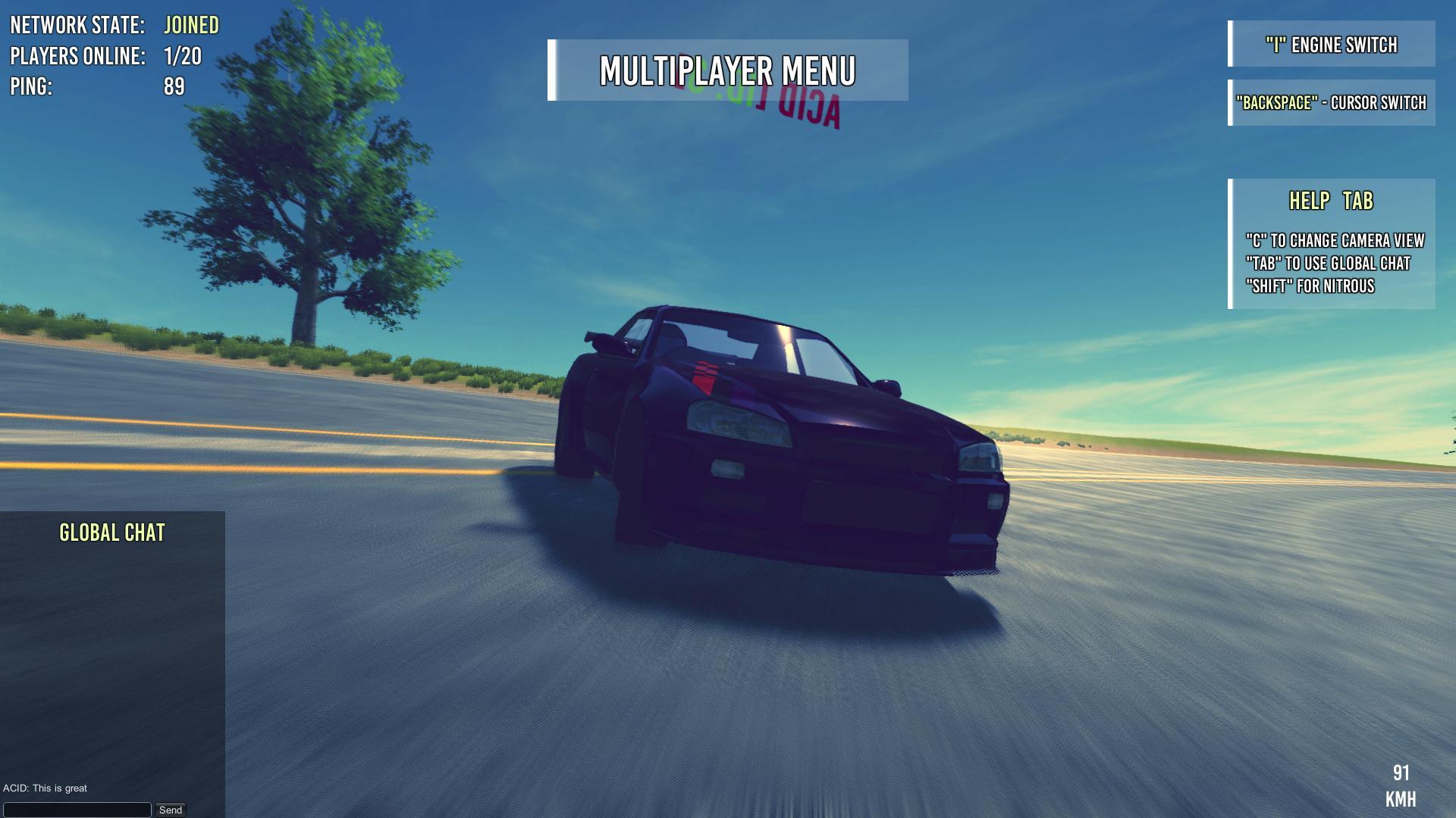 Aside from that, Multiplayer (and main menu) UI were improved. You can now also see other players name's and unique ID's above their vehicles. I've also added new building (parking garage) near the spawn (on the left), where people could drift around and what not. As well as some stunt bridges for people to have more fun. Other than that, as I mentioned, I fixed a few bugs that were with multiplayer. I still have more ideas for multiplayer and game in general, so keep posted for another update.