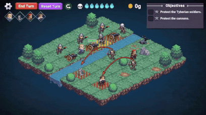 During playtesting, we realized some tiles have an advantage over others. For example, you might always land adjacent to rocks and bushes. To add a little challenge, we manually configure the available deployment positions for each map.