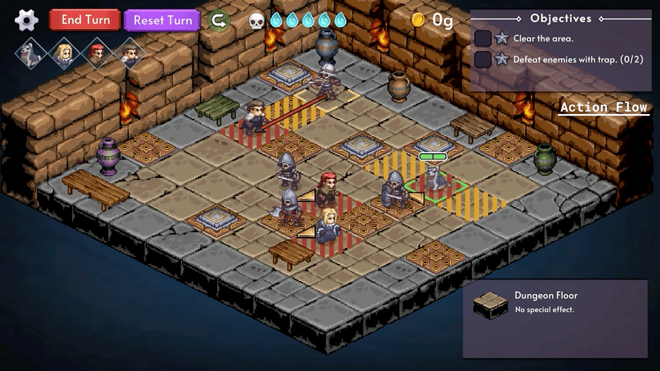 The classic spike trap deals damage to any unit that stands on them. If an enemy is positioned on a trap tile, simply move one of your units to a switch and surprise them! But be sure none of your allies are positioned on a trap before you trigger it.