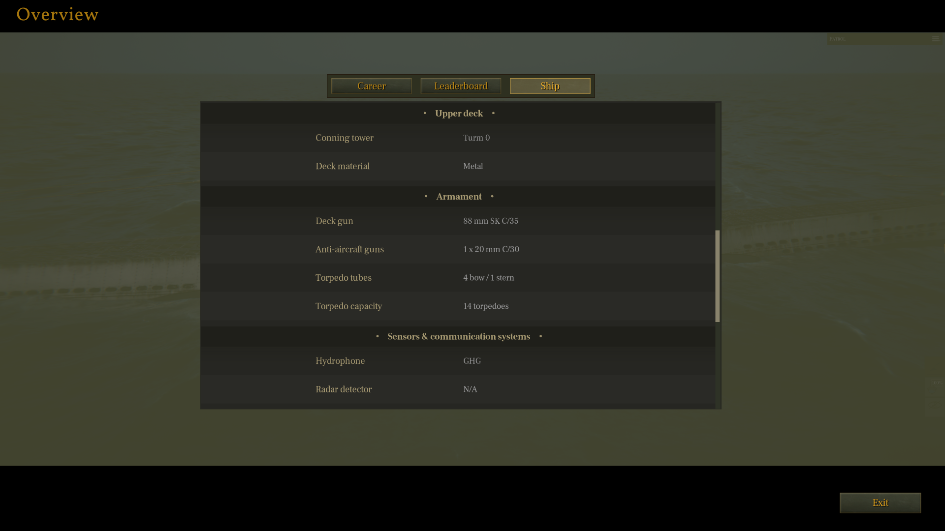Another addition is a ship summary screen that displays various technical parameters of the U-boat, as well as all installed upgrades, making this information accessible while at sea for a quick reference.
