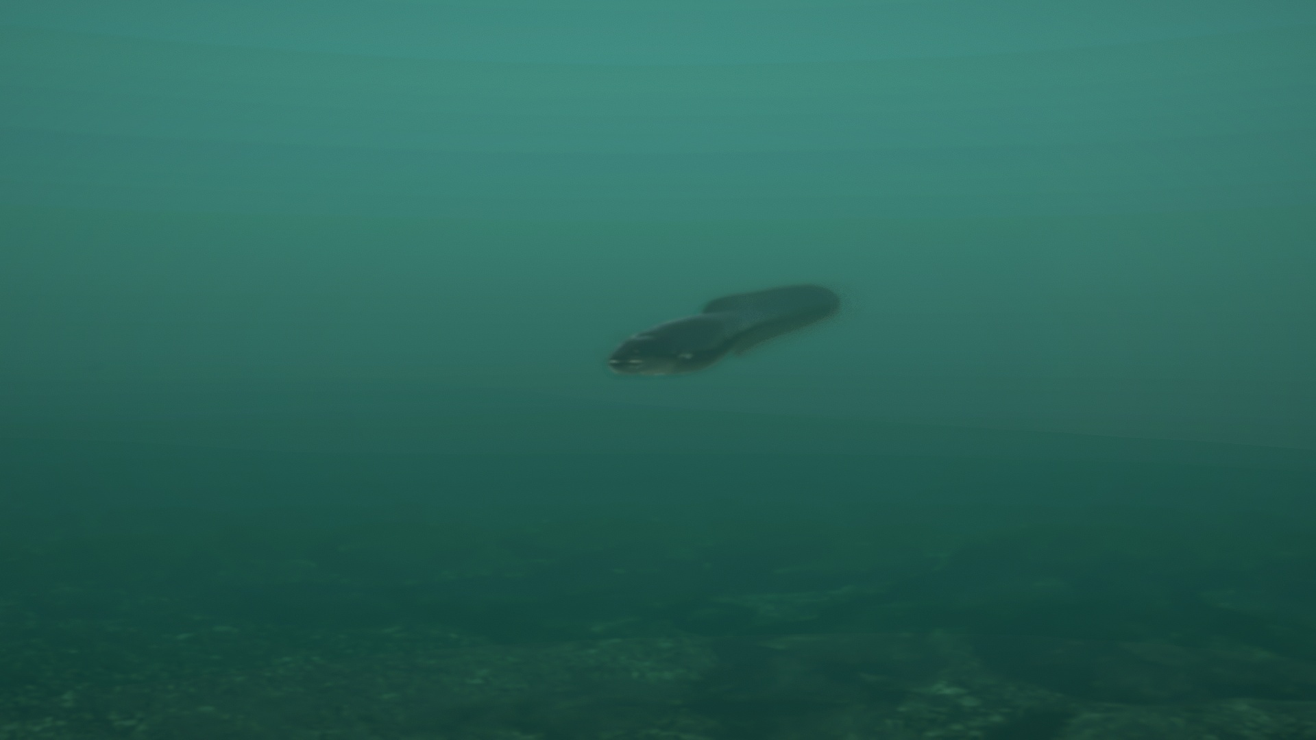 The bluegill swimming animation appears stiff and the distortion problem has not been resolved.