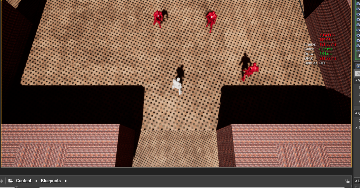 Sewer Level is more claustrophobic now as a result of me making the tunnels a lot tighter. This gives a much better feel to this level and was something I realised while reducing the number of meshes in the level. This is much less to do with performance and much more to do with aesthetics.