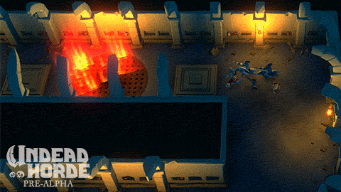 One of the things we've added are some dungeon levels. And of course there are some interesting traps in dungeons. We've adapted some classic trap mechanics to be used in a leader+horde setting as we have in Undead Horde. In this post you can see a pressure plate fire puzzle where you need to time your commands right to avoid getting burned to ashes.