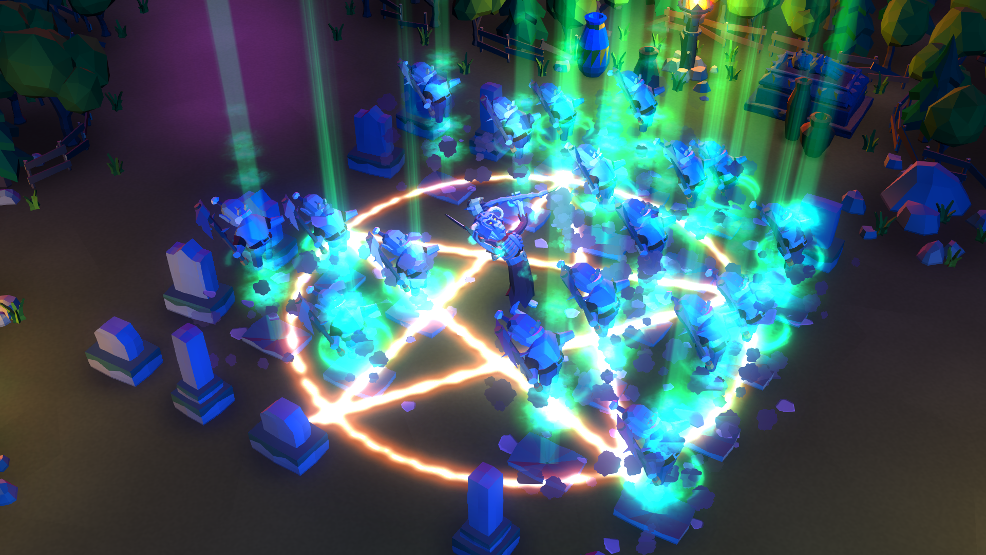 People have been asking about the controls and troop command method. Undead Horde uses WASD/twin-stick controls for the necromancer, allowing you to move and aim/smite independently.