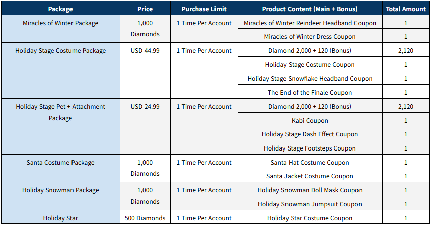 2. Server Patch Details - The issue where 'Santa Jacket', 'Santa Hat', 'Holiday Star' Costumes disappear when restarting the game after purchase has been fixed.