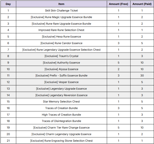 Ranking rewards have been sent to Rune Hunters who have won from 1st to 25th place in ‘Chaos Mission Ranking - 2nd, 3rd Round’ until Nov. 28 (Thu) 2024 and ‘Training Arena Ranking 1st Round’ until Nov. 21 (Thu) 2024 in the Season Re:Birth Mode.