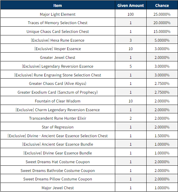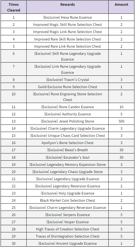3. Maintenance Compensation : Gemstone of Courage x 3,000 Transcendent Rune Hunter Elixir x 3 Fountain of Clear Wisdom x 5 * You can claim the compensation from your mailbox after the Aug. 31(Sat)maintenance until Sept. 7(Sat)23:59 (UTC+9). * Maintenance compensation will only be sent once per account for both modes, and the mail will be stored for 3 days (72 hours). ┗ You can only claim the compensation from either Standard or Season Mode. * Maintenance compensation can only be claimed by accounts created before the maintenance. Compensation cannot be claimed by accounts that were created after the maintenance. * The Zodiac Walker effect's duration is not affected during maintenance.