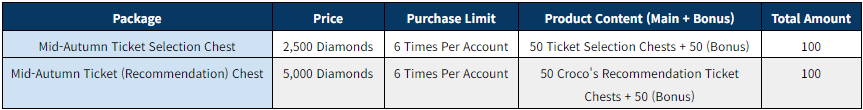 ■ To Note ※ The Costume Coupon that can be obtained from the Mid-Autumn Chest can be disassembled into 10 Ticket Selection Chests.