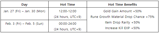 ■ To Note ※ Event details may be subject to change. ※ If the Hot Time event does not seem to be working, please restart the game. ※ You cannot receive Hot Time benefits outside of the event period.