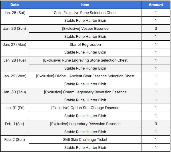 ■ Reward Distribution - Distributed to all Rune Hunters via mail : The rewards have been sent via mail during Jan. 23 (Thu).