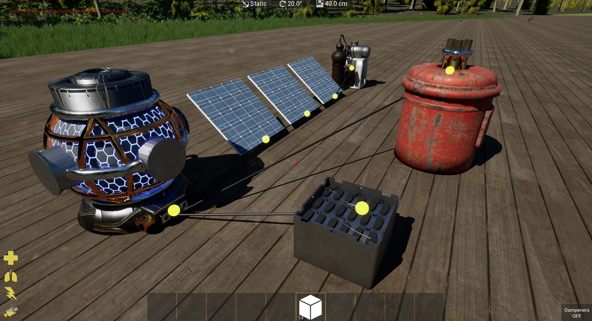 The electrical base functionality is already working well and currently we're implementing a lot of electrical machines into this base system. (Solar panels, electrical furnaces, lights, batteries, first iteration of nuclear reactors, etc...)
