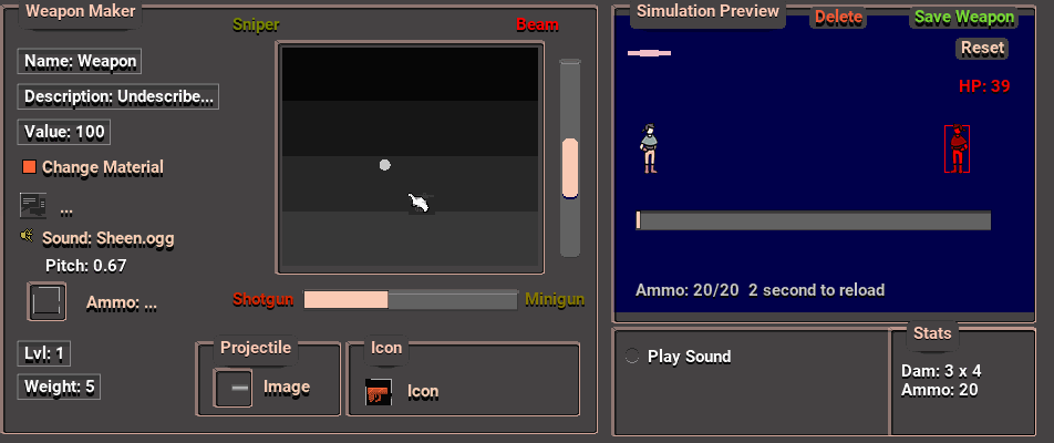 The new weapon maker is now ready for you. Its easier then ever to generate hundreds of weapons for your module and see how it would react in game with the simulator preview window! This opens up hundreds of possibilities for weapons for your players to collect, trade, and use in your games.