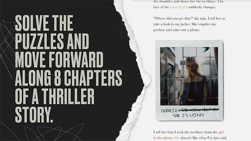Soon we will be able to tell you more about it. At this moment, we can tell you that it has the same format as unmemory (a game that you read, a book that you play) but the story is totally different. If you want to know more, you can click here