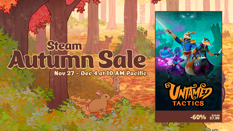 The Steam Autumn Sale is here, and itโs time to stock up for the winter! To help you prepare, weโre offering a 60% discount on Untamed Tactics! ๐