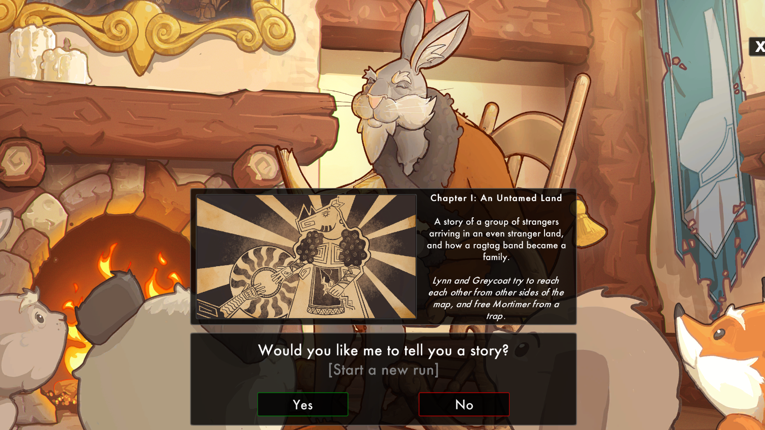 We're also focusing more on the integration of systems and narrative. Gone is the boring 'start run' menu. Instead, players now return to Old Greycoat's room for a new Story (run) or to play through Memories (linear adventures), and interact directly with Greycoat, his room and his eager audience, hungry for tales of adventure.