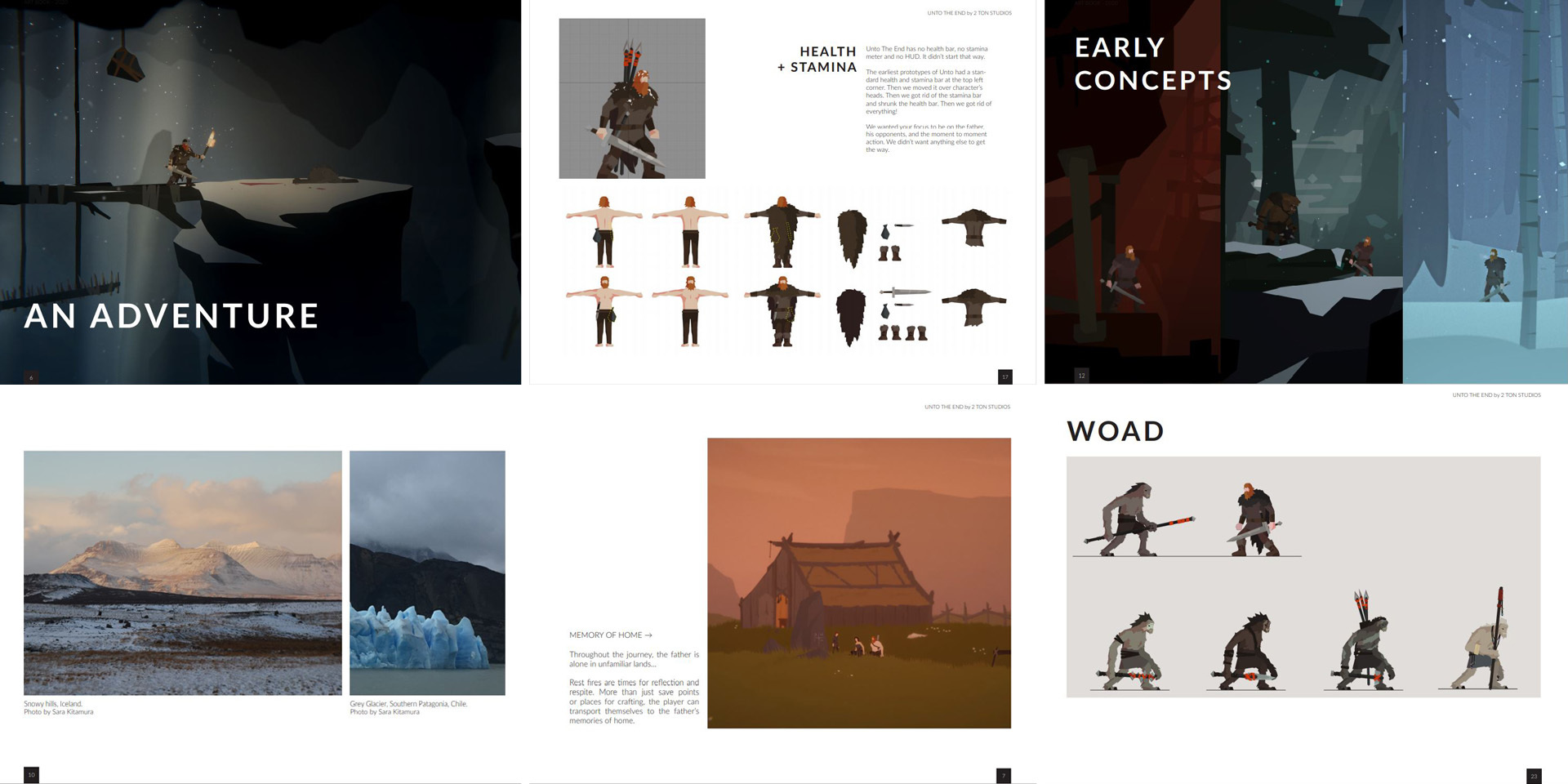 Deluxe Digital Artbook: Compiled and designed by 2 Ton Studios (aka husband and wife team Stephen Danton and Sara Kitamura), this artbook offers a fascinating collection of exclusive imagery, accompanied by developer notes and insight. Includes early concepts and sketches, selected screenshots, and photographs of the real-life places that inspired Unto The End.