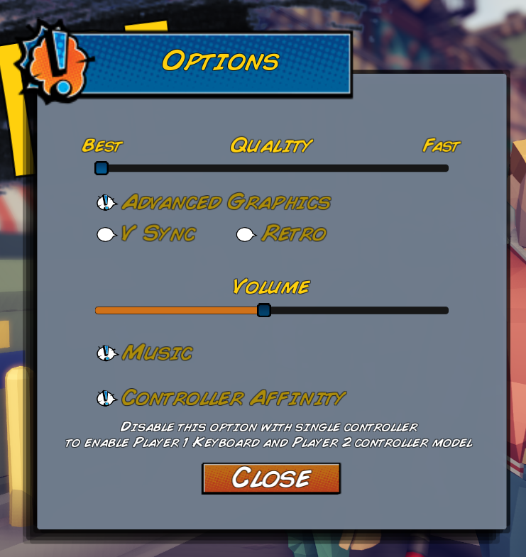 With the new "Controller Affinity" options, players can now select two different input models, this option is mostly useful when only one controller is connected, and allows player 1 to be controlled with keyboard and player 2 to be controlled with a controller. This option is available in game options and can be switched on the fly.